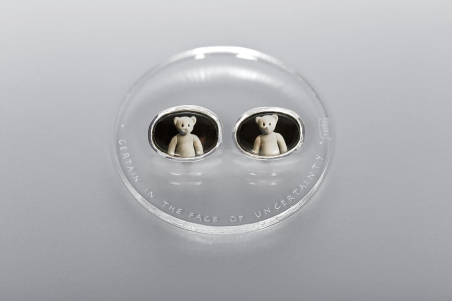 "Certain in the..." cufflinks with rock crystals · CERTUS ADVERSUS INCERTA EST ·