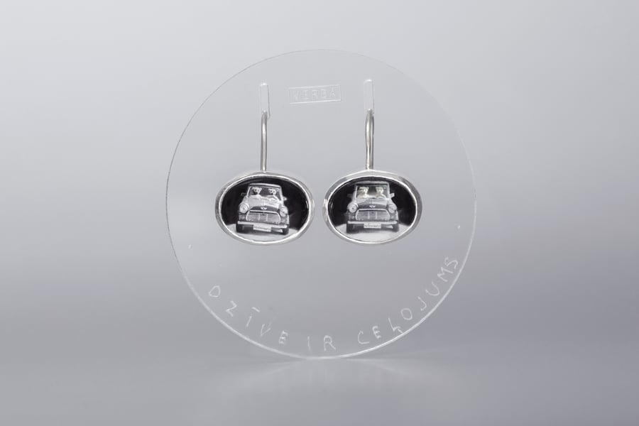 "Life is a journey" teddy-bear silver earrings with photo and rock crystal · PEREGRINATIO EST.. ·