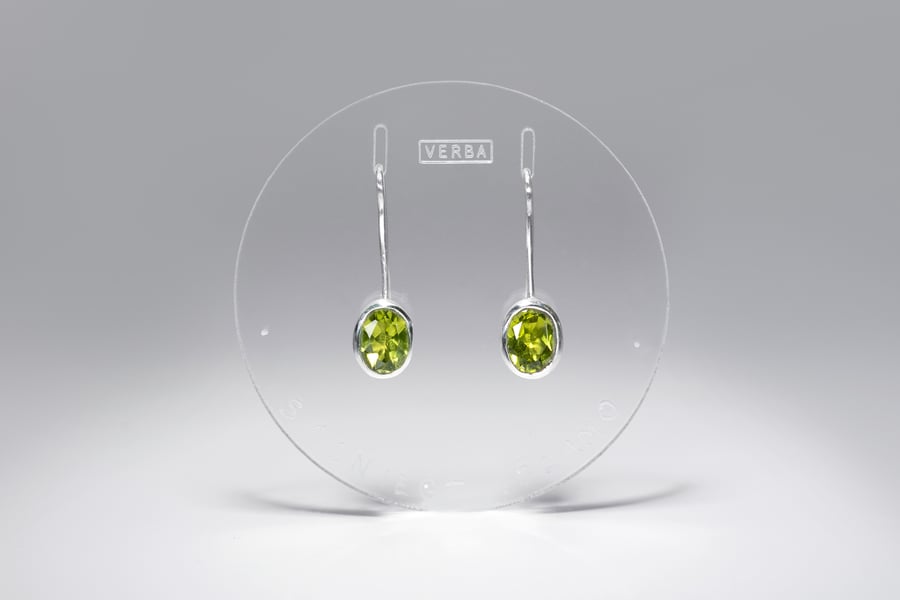 "To attain a desired goal" silver earrings with chrysolites · FRUI VOTIS ·