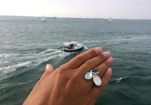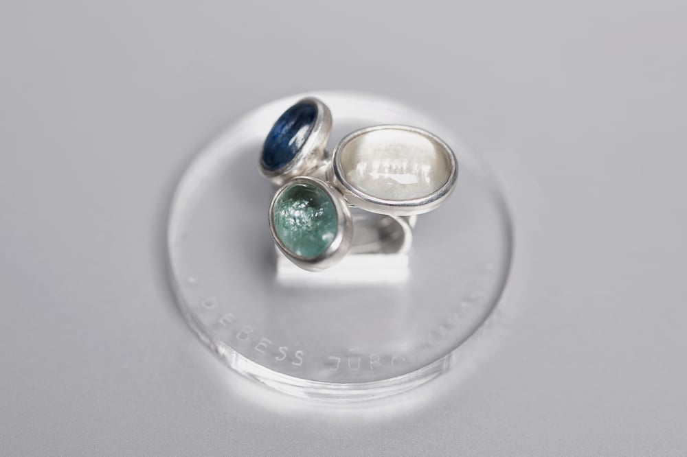 "The sky, the sea.." silver rings with aquamarine, rock crystal and kyanite · CAELUM, MARE..·